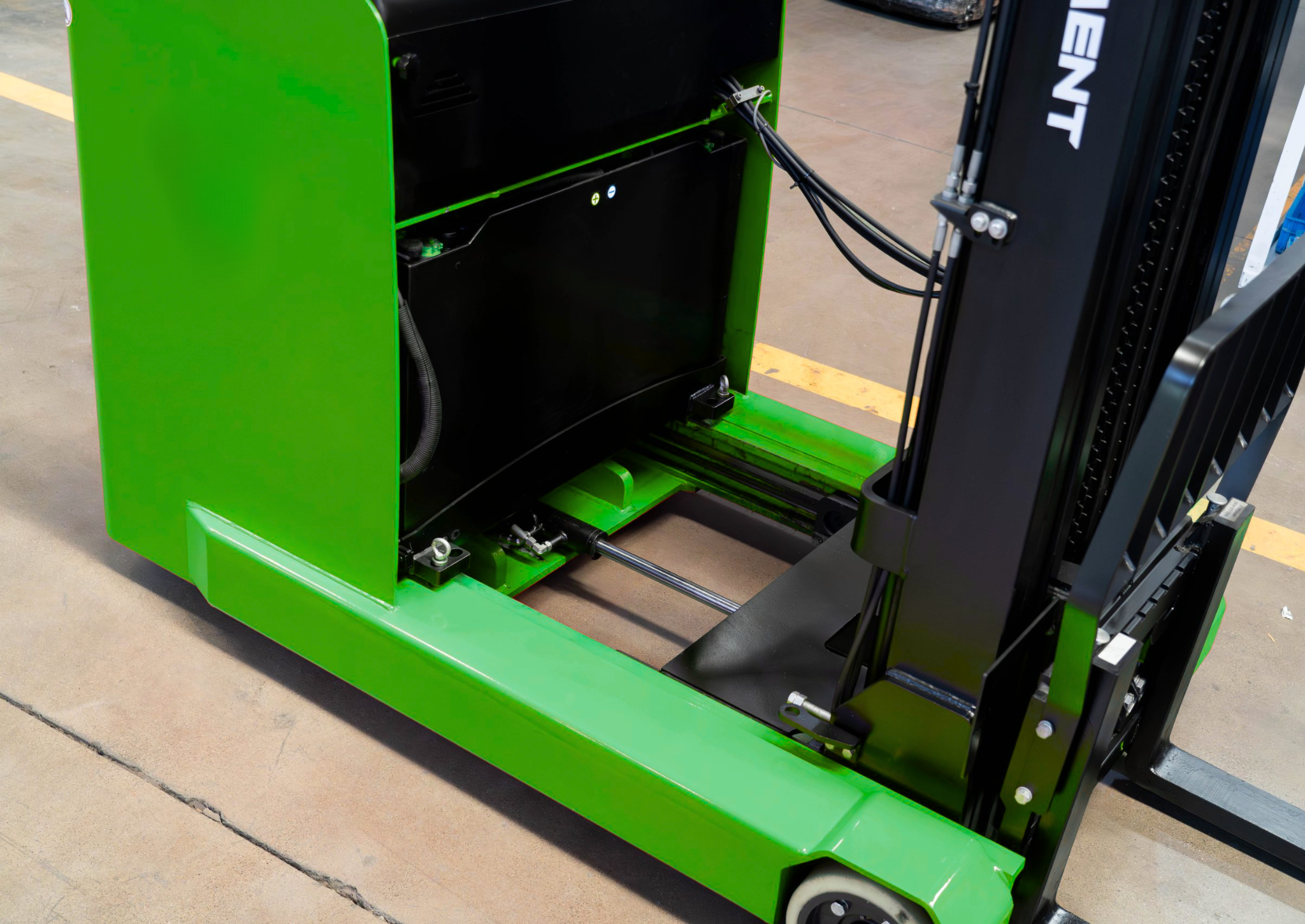 Easy mast-assisted extraction for quick battery maintenance or replacement.