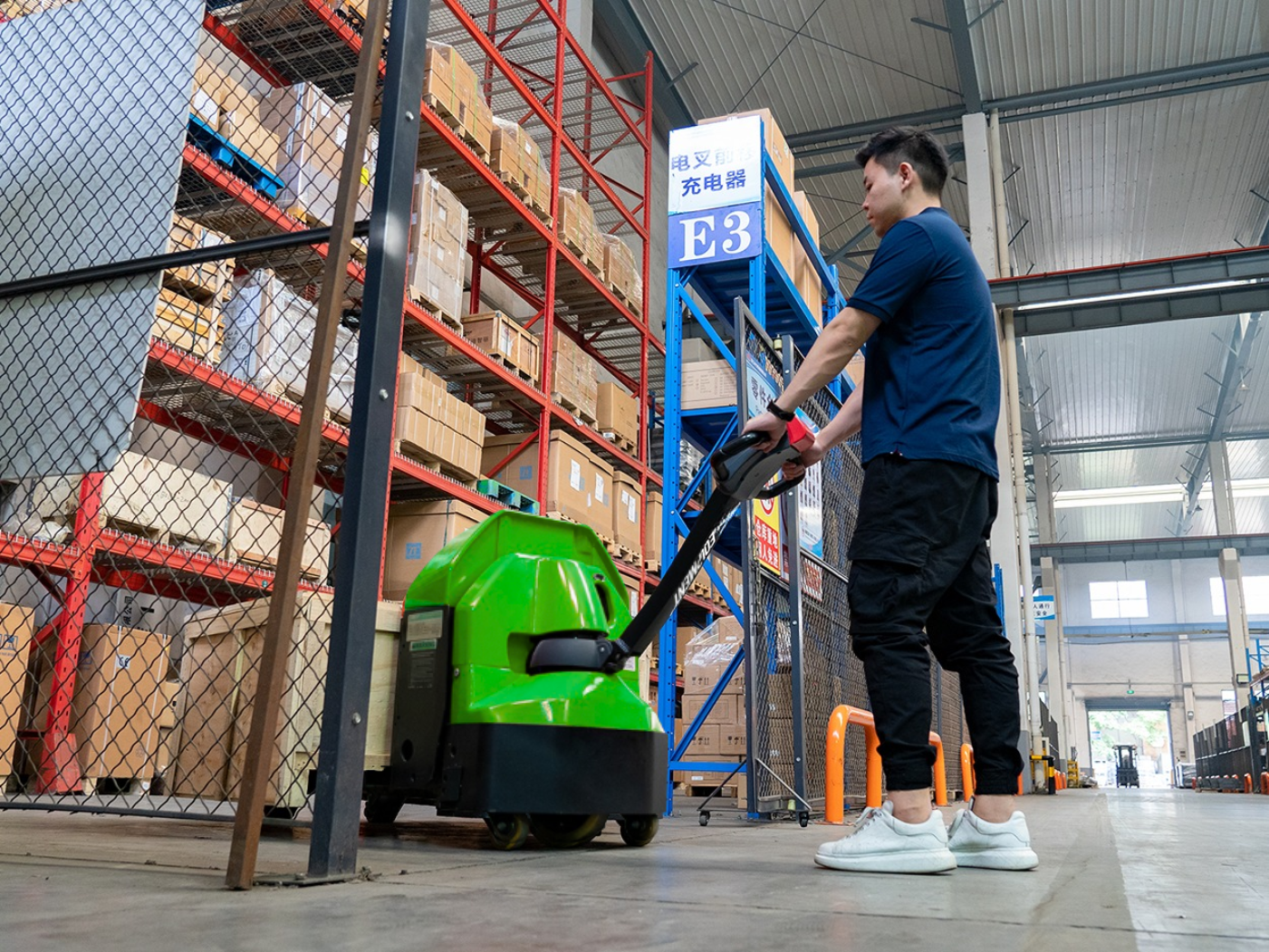 - ไม่ต้องบำรุงรักษา: รถลากพาเลทไฟฟ้านี้มาพร้อมกับแบตเตอรี่ AGM และเครื่องชาร์จในตัวเพื่อความยืดหยุ่นในการทำงานสูงสุด