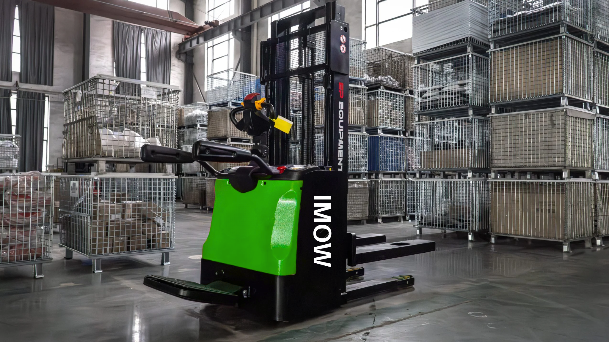 รถโฟล์คลิฟท์แบบแบตเตอรี่ลิเธียมไอออนพร้อมแท่นยืนพับได้ รับน้ำหนักได้ 2000 กิโลกรัม
